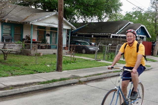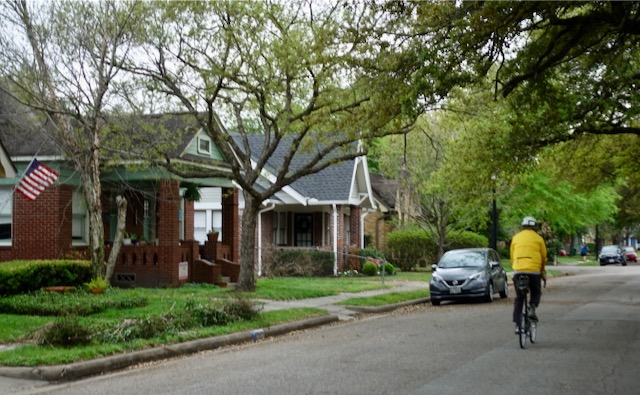 We cycled onward south, through the shaded residential areas of West University Place, the Montrose neighborhood, and the area around Rice University.