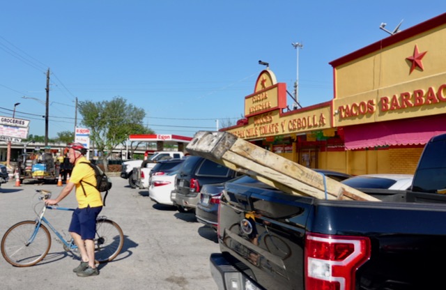 I called an Uber. Tom accompanied Lyman in the Uber to the Memorial Herman Greater Heights Hospital, Jorgen cycled the several miles to his house to get his pickup truck, and I sat on the grass and Watched The Bikes. After about an hour Jorgen came with the truck and picked up me and the bicycles. After dropping the bicycles off at the motel Jorgen and I hung two blocks away from the hospital another outdoor restaurant King’s BierHaus, and split some sausages. Tom learned from George that saying that you have had a head injury (which was true) puts you in front of the line at the hospital. Tom called me after it had been about two hours and he and Lyman were ready to leave. Verdict: Lyman had a concussion and a badly bruised shoulder.