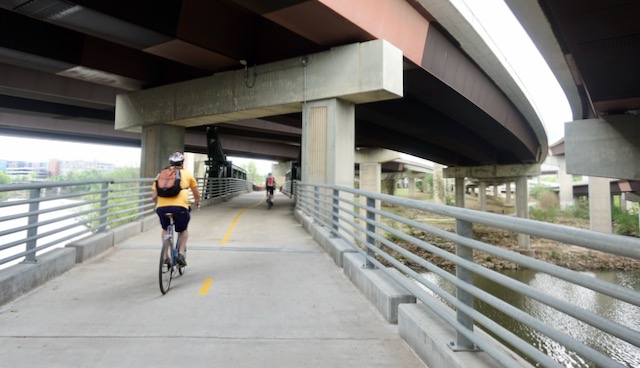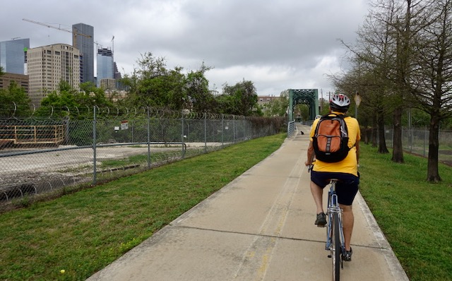 Jorgen took us for a bicycle tour of inner Houston, first cycling through The Heights, then onto Houston’s extensive network of paved trails. This being Houston, the trails intersect and follow not only the natural areas along the bayous, but the freeways as well.