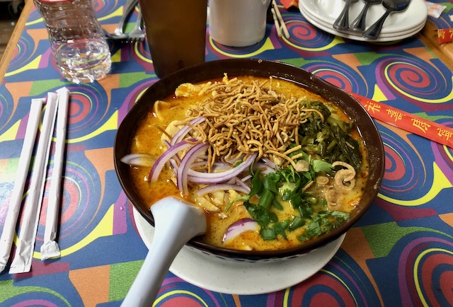 Lyman felt good enough to go out to lunch, and then again for dinner that night at a non-fancy looking place that Jorgen knew about near our motel. Street Food Thai Market specializes in a certain region of Thailand and Laos. The food was spectacular. This was my noodle soup entree, I wish I could remember its name.