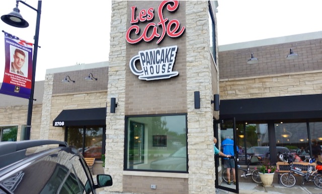 The proprietors had strongly recommended we visit Les Cafe Pancake House for breakfast the next day. It was filled with families and what looked like church groups on this Sunday morning. Inspirational bible verses were on the walls. Breakfast was pleasantly filling. Banners of military veterans labelled as Hometown Heroes lined the streets of town.