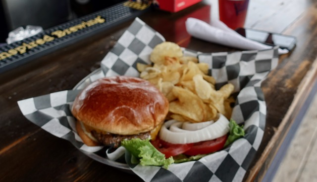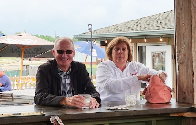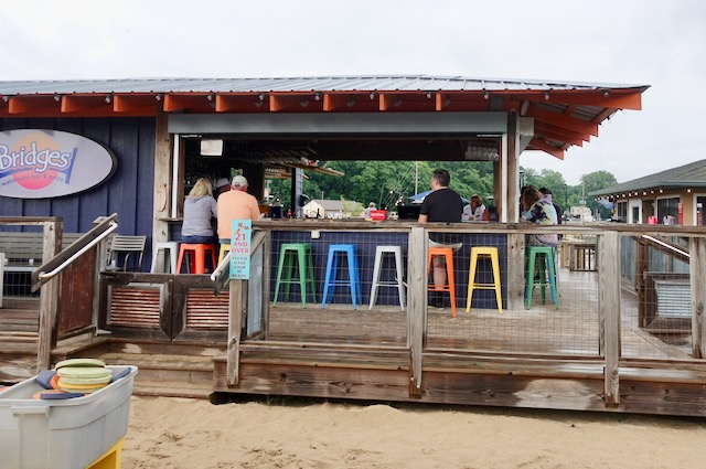 Our luck improved further when we learned that the hotel owners, three sisters, also owned the Bridges Waterside Grille across the parking lot. After cleaning up and drying out, we found seats at the Caribbeanesque outdoor bar. It was still drizzling, with temperatures in the sixties. People in this part of the country know to always bring a jacket, even in the summer. Everyone was drinking hard liquor.