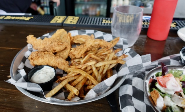 I took the recommendation of the bartender and got the fried lake perch dinner, served drunken, which meant the addition of a spicy heavy coating. It ranks among the best fried fish I remember eating.