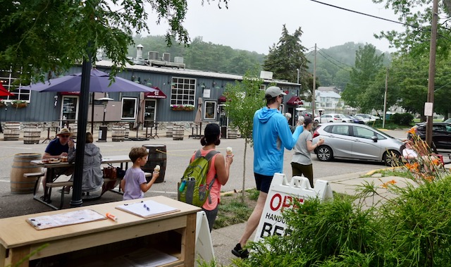 Although we had no idea where were going to sleep that night and we already knew that all the hotels and restaurants were pretty full, Lyman and I responded by looking for a place to get a beer. We found The Mitten, a brew pub in an old house, named after the shape of Michigan on a map. We were able to get a seat because we were standing there when they opened at 5:00 PM. They had excellent pizza and beer. We could watch the scene walk by on the street.