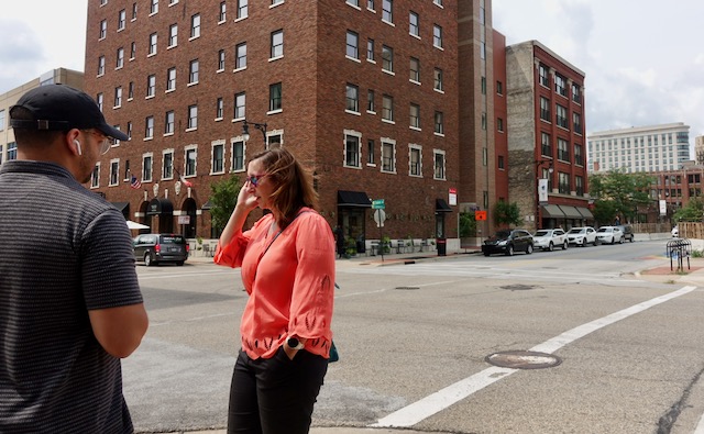 We had a beer on the sidewalk of St. Joseph MI and looked at the tourists (were we one of them?). We searched on my phone for a place to spend the night. There were two hotels in St. Joseph that had rooms, but each cost over three hundred dollars for a two double bed hotel room. Furthermore, we decided the vibe in St. Joseph was just a little too cutesy for us. Only a couple miles away, on the other side of the St. Joseph River, was the city of Benton Harbor. I had heard the name Benton Harbor because I knew from somewhere that it was and is the headquarters of appliance maker Whirlpool. Airbnb offered a what turned out to be a really nice full apartment in downtown Benton Harbor. We accepted online and biked over there.