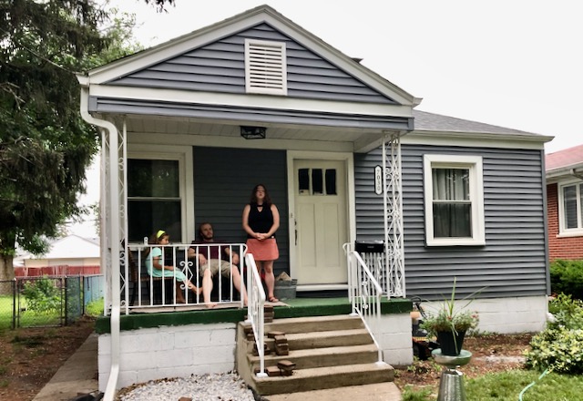 Lyman and I enjoyed meeting the Airbnb proprietors, a couple and their young daughter. After we had showered and gotten our stuff together, we got back on the bicycles to cycle one mile to go out to eat. The proprietors were hanging out on their porch.