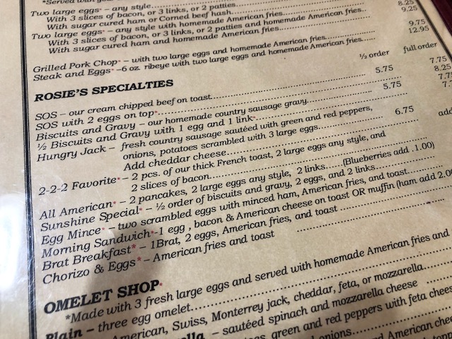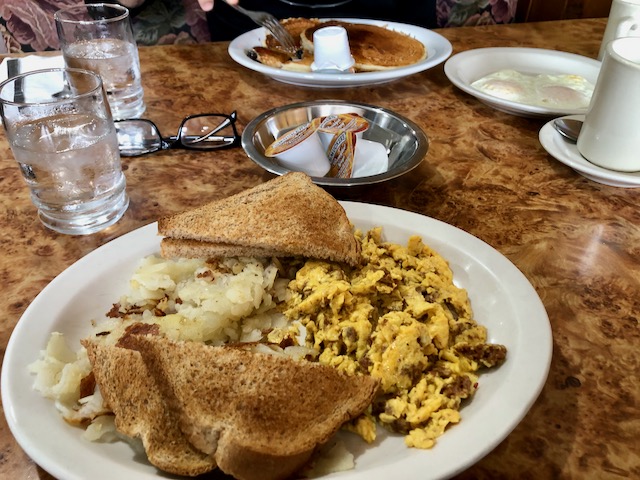 At 10:00 AM on a Monday there was a wait for a table at Rosie’s, named after my dog back in Chapel Hill NC. I worried a little about Covid even though both Lyman and I are fully vaccinated. On hears about parts of America being vaccine hesitant and inside Rosie’s all the people were maskless and jammed together. I forced myself to ignore this and enjoy the breakfast.