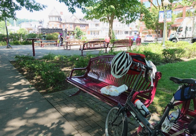 Lunch was at the larger town of Sunbury PA (population 10,000.). Because the taco place had no outdoor seating I took my tacos to a park downtown.
