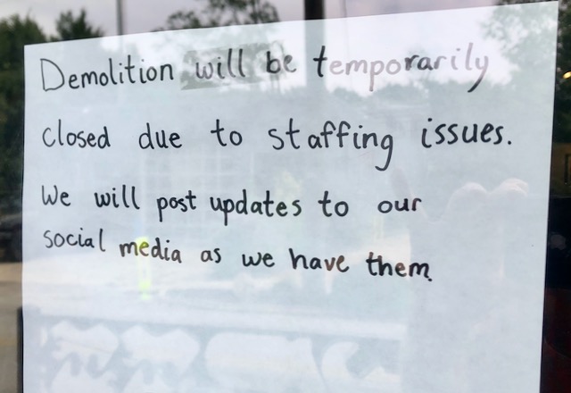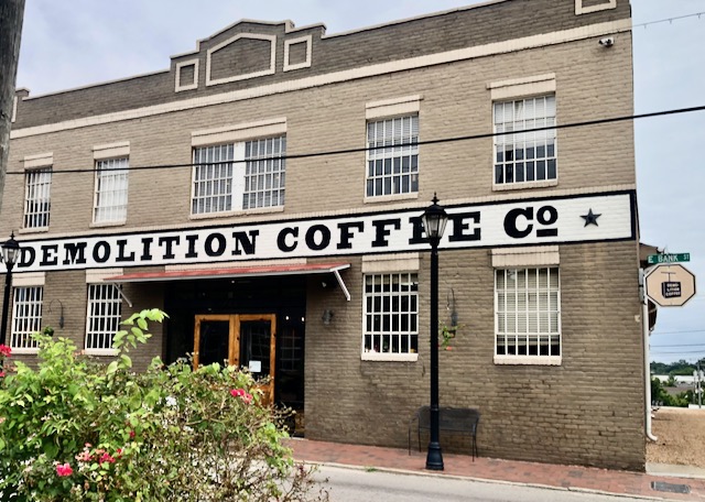I like to drink coffee while driving and am a big supporter of small independent competitors to Starbucks. These coffee houses have opened all over America, frequently in otherwise neglected downtowns. They are easy to find by searching “coffee” on Google maps. I knew of a place in Petersburg VA really close to I-95. I wanted a latte-to-go, but Demolition was not open.