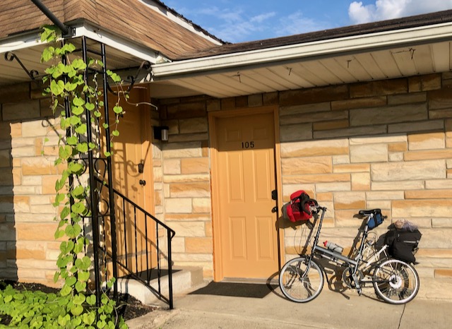 It was too hot to bicycle all the way to Harrisburg. I stayed in the very nice hotel Mainstay Suites at the freeway interchange. The one restaurant near there said they were short staffed and could only do indoor seating. My hotel had a real kitchen, I cooked myself supper that night and watched sports on TV.