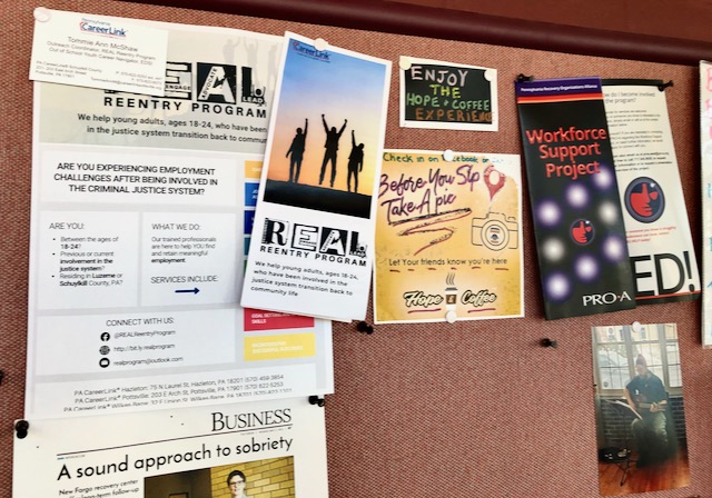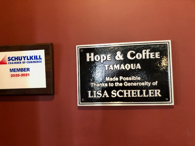 Twelve miles down the road on this Sunday morning, it was a respite to sit outdoors in Tamaqua PA with an almond milk latte at a nice place called the Hope & Coffee. Hope & Coffee clearly has a mission to help the recovering.