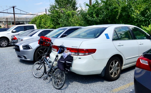 By car, Harrisburg PA is a little over two hours north of Washington DC and six to seven hours from my home in Chapel Hill NC. On my trips I frequently park in Walmarts for extended periods but on this one I got all cautious and paid to park in a commercial lot in downtown Harrisburg. I pulled my bicycle out.