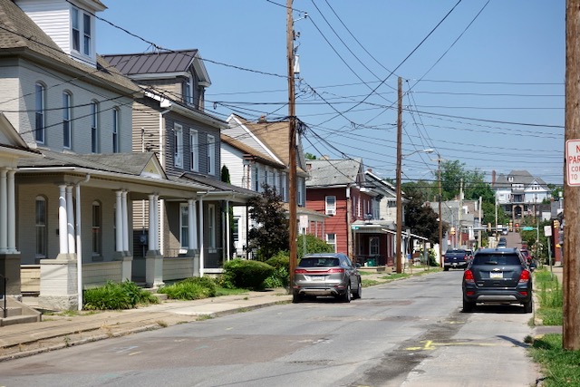 I cycled on this Sunday morning up and down a hill on a wide highway before turning to cycle through the street grid of Hazleton.