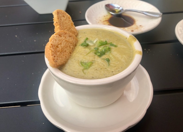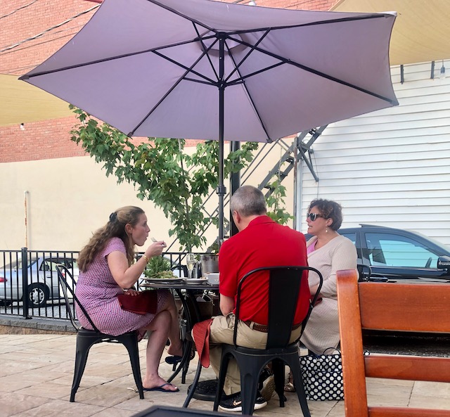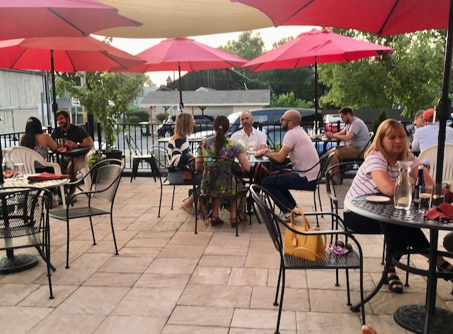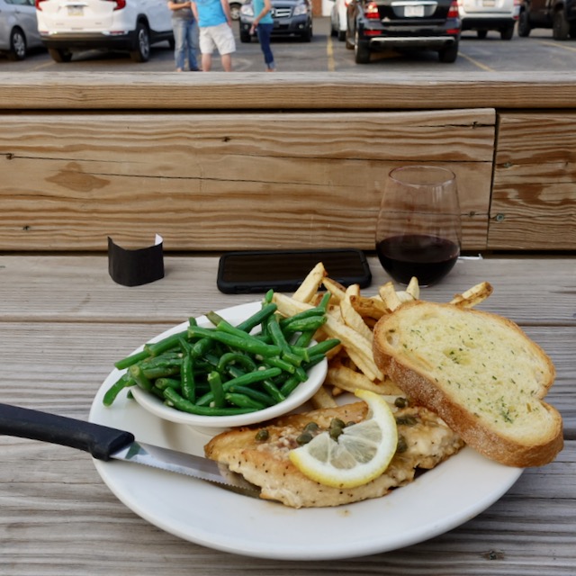 Dinner down the street was nicer, a somewhat fancy restaurant called Elizabeth’s. There is so much Red America out her that Blue America stares you right in the face. During this pandemic the lower cost places mostly had only crowded indoor seating but restaurants catering to a Blue America clientele had outdoor seating that was usually full. I only got a table here only because I had called a couple hours earlier to reserve.