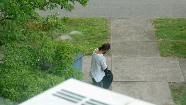 While I was in my room upstairs packing up I saw out the window a man come up and take food from the box.
