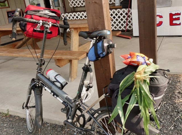 I continued my lowest gear, chugging slowly up the mountain. I was still carrying my mini rice cooker and I had planned to cook my own dinner in a hotel room that evening. I had seen signs for fresh local corn all during this trip and halfway up the mountainI finally stopped for corn. They were shocked that I only wanted one ear of corn for fifty cents.
