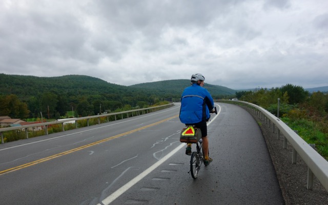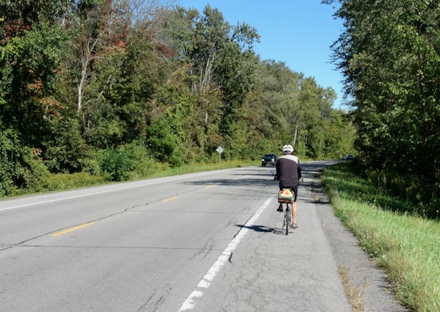 After about fifteen miles on the trail we turned south on conventional highways. Harvey had bragged to us that all significant New York State highways have paved shoulders, and he claimed to know the guy who in the 1960’s implemented this policy. It is absolutely true that almost all two lane highways in my home region of North Carolina, South Carolina, and Virginia lack these wide paved shoulders.