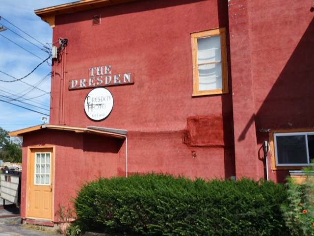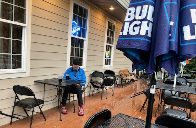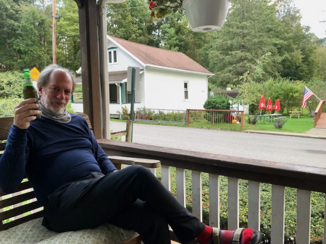 Despite the rain and the small choice of restaurants that evening I kept my insistence that we eat outdoors. Lyman cheerfully went along. The Wellsboro House Bar & Restaurant served us beer and dinner outside under the overhang. It worked out quite happily.