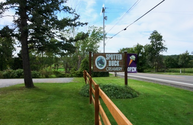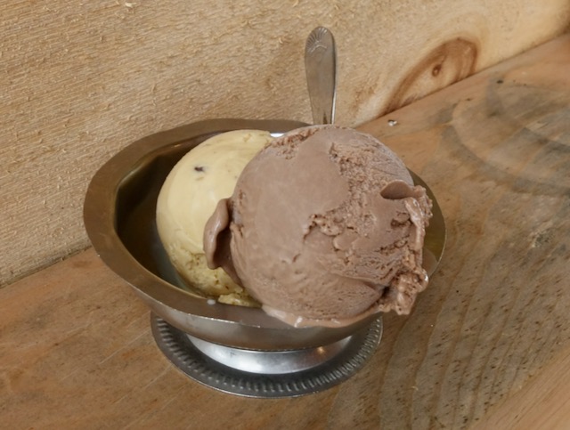 It must be a Northeastern thing. On the side of the road in the middle of nowhere, with lots of chickens and ducks running around the yard, was an absolutely gourmet ice cream parlor. I had seen word of the Spotted Duck on Google Maps and we had to cycle off our route for more than a mile, almost all uphill. The ice cream was clearly homemade with high cream content. There were exotic flavors.
