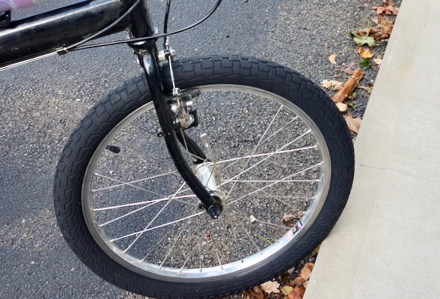 Back at the hotel room we pumped our tires getting ready to leave. Lyman’s front tire and tube essentially failed. While we had brought spares it would be better just to buy new ones but there was no bike shop in Watkins Glenn. Luckily, I bicycled two miles over to the Walmart in Watkins Glenn. A BMX tire and tube from Walmart fit Lyman’s bicycle perfectly.
