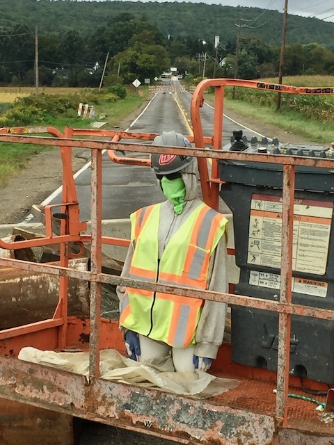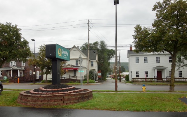 It was still seventeen miles to our night’s destination of Wellsboro PA, the only town in the region that has motels. Right after we started cycling after lunch the skies opened up and we both got quite wet. We pulled into Wellsboro looking to dry out.