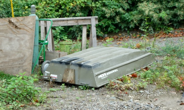We declined the temptation to steal a boat and had to turn around and cycle the long way around. Our original route was following a creek with small mountains rising from each side, so the detour involved some steep hills.