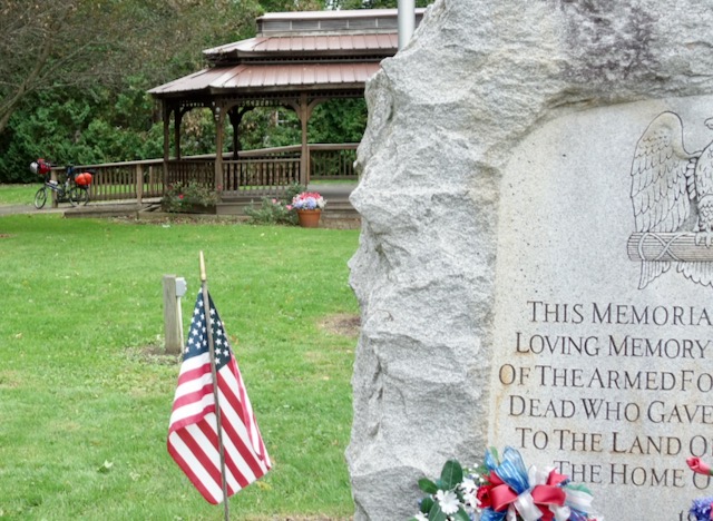 We watched a woman make us submarine sandwiches (with too much mayonnaise!) at a Citgo station mini-mart. Repeating a pattern seen all across central Pennsylvania and southern New York State, this tiny town has made a huge effort to honor military veterans. We ate our sandwiches sitting around a tiny veteran’s memorial park, hoping the rain would not start again.