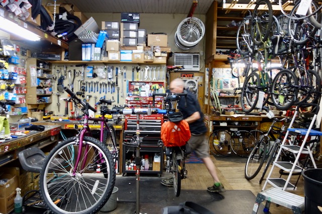 The next morning we did not started cycling until almost noon because of rain. As we were heading out of town my rear brake cable repeatedly jammed. I theoretically could have fixed it myself but luckily we were a few blocks from a bike shop called C S Sports and we waited an hour while they re-cabled my brake.
