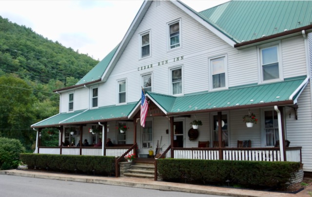 In the late afternoon we arrived at about the halfway point of the trail. Cedar Run Inn is next to the trail and is essentially the only lodging around here. This welcoming place is the rare American small hotel that offers quality food and lodging for one low all-inclusive price. We paid $ 95.00 per person, including dinner and breakfast, cash only! I had made reservations almost three weeks in advance for a weeknight and they said I was taking the last available rooms. In talking to other guests, many had been coming here for years, most were from other parts of central Pennsylvania, and none were touring bicyclists.
