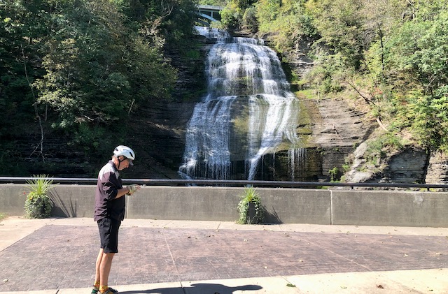 By car we arrived into Rochester NY at 8:30 at night, just before closing time at a restaurant called the Owl House. We luckily got an outdoor table; drinks and each a sesame noodle bowl. Gourmet health food! While both Lyman and I fully vaccinated, I am a worrier about COVID. I wanted to stay out of crowded indoor spaces and to eat al fresco. During the next week we would be bicycling through an area where vaccine rates are low and Trump support high. After leaving Rochester we saw almost no one wearing a mask.