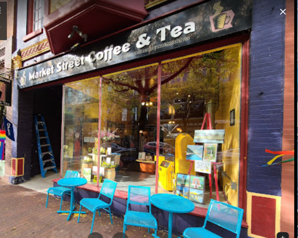 Market Street Coffee and Tea sadly does not make lattes, it just sells brewed coffee by the cup. We made do and sat out front, looking at hotels on our phones.