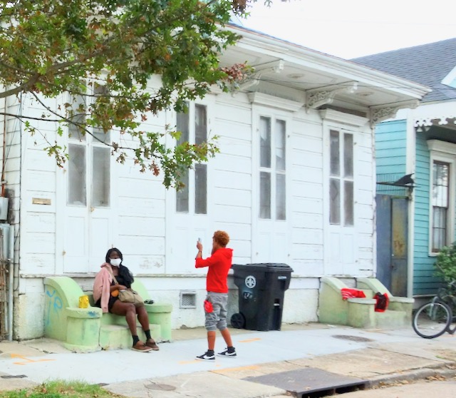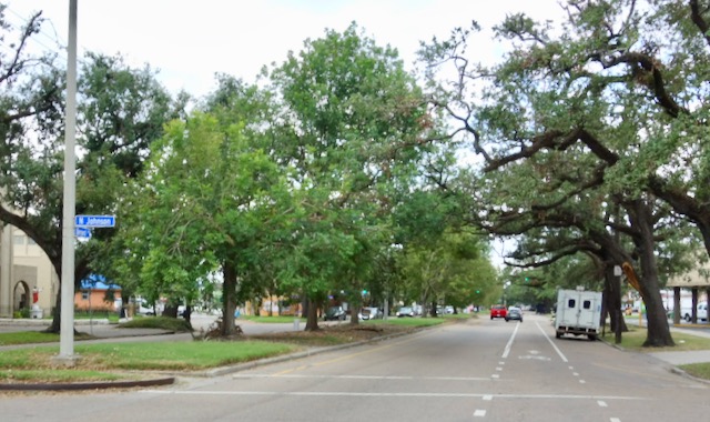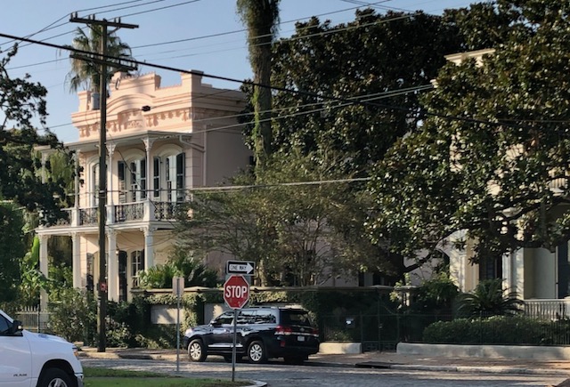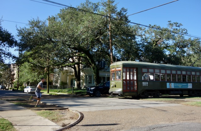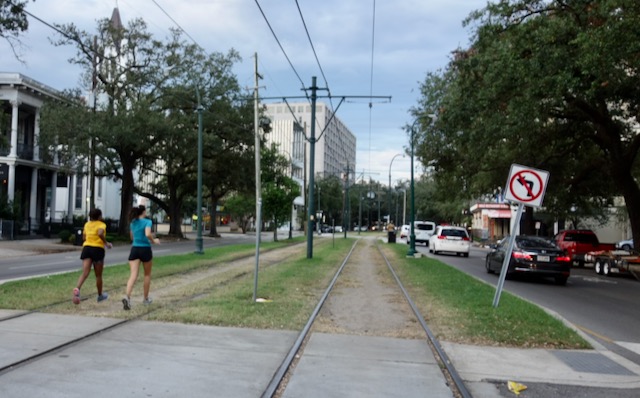 I had only bicycled two and a half blocks; I crossed over St. Charles Avenue with its famous streetcar on the neutral ground. The tracks are a popular place for jogging.