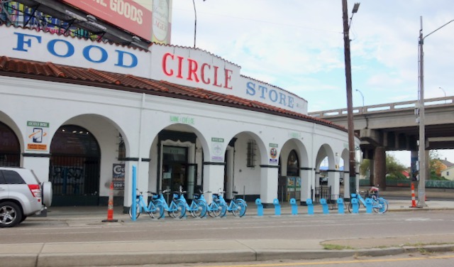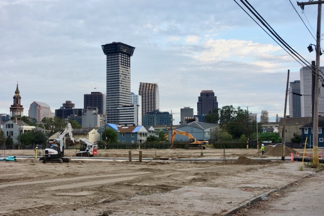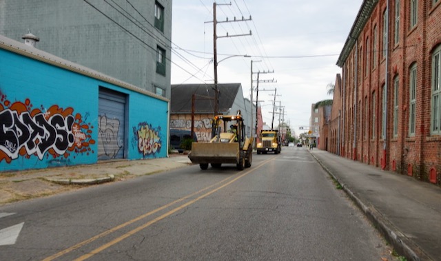 Cycling two blocks further downtown on Carondelet Street a former milk processing factory was just torn down and trucks were clearing the site for redevelopment.