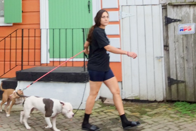 I bicycled back uptown in the direction I had come from but now three blocks over, on Burgundy Street, back through Bywater and Faubourg Marigny. There seemed to be a lot of dog walkers.