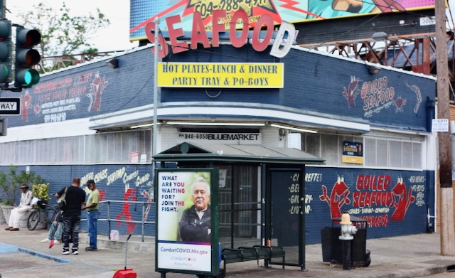 Heading out St. Bernard Avenue I soon crossed South Claiborne Avenue, a street famous among American urbanists as one of many places where the 1960’s exuberance to build the Interstate Highway System lost its moorings. South Claiborne was and is a center of African-American commercial life in New Orleans. I-10 replaced South Claiborne Avenue’s oak trees with a freeway. The pre-1960 supermarket is still here.