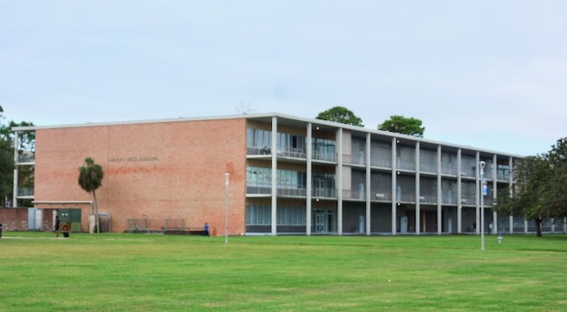 UNO is on the lakefront with its Modernist style campus. I needed a bathroom so I impersonated a student by walking into one of the classroom buildings.