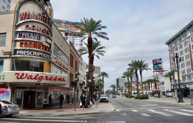 I bicycled across Canal Street, formerly the main downtown shopping street. Its retail is struggling.