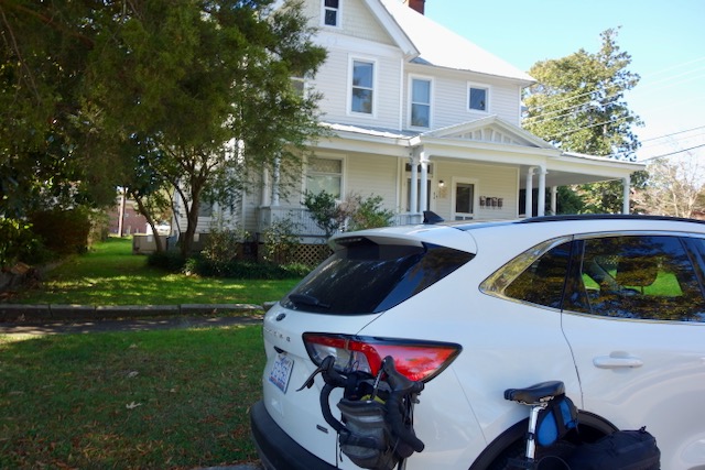 This trip would be a one nighter. I drove our Ford Escape Hybrid an hour and a half east of Chapel Hill. Tarboro is one of the prettiest small towns in North Carolina. I drove around Tarboro looking for a safe neighborhood where I could park. There were no “No Parking” signs anywhere, no signs about parking at all, really. Would anyone care if I left our car parked here for thirty something hours? I guessed I would find out.