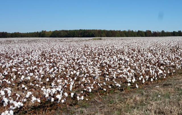I guess it was appropriate that for much of the day I bicycled through cotton fields. The plants were fluffy and white, ready to be harvested.