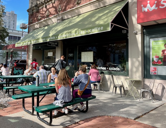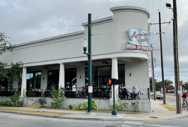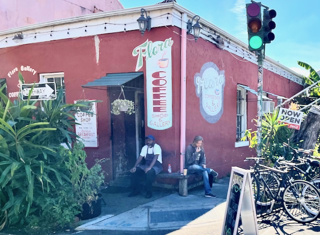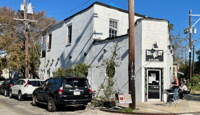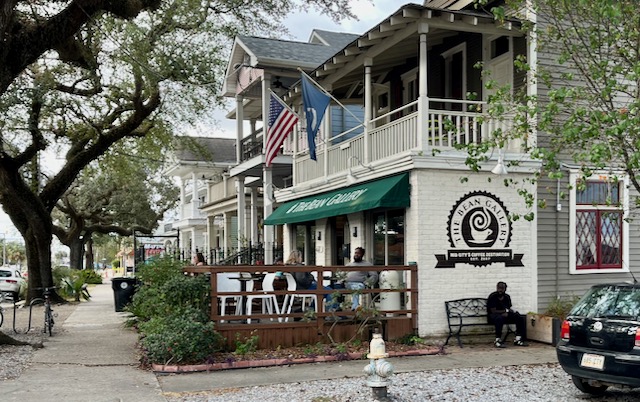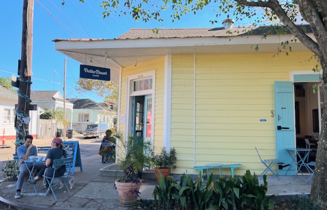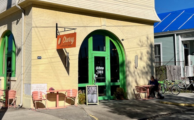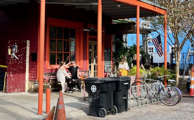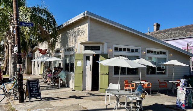 Writers who consider urbanity talk about the importance of a third place, a public setting to hang out that is not your home and not your workplace. On a recent stay in New Orleans I found comfort in cycling for an hour or two or three around New Orleans before sitting alone outdoors at some random coffee house reading (mostly The New Yorker) on my Kindle. These coffee houses are spread over a large area, some many miles apart from others. While traditional New Orleans coffee has been drip coffee with chicory, I always get a latte made with expresso and oat or almond milk. There are a three local chains (CC’s, PJ’s and French Truck) but most New Orleans coffee places seem proudly independent. Most were established in the years after the 2005 Katrina hurricane. I will group them by neighborhood.