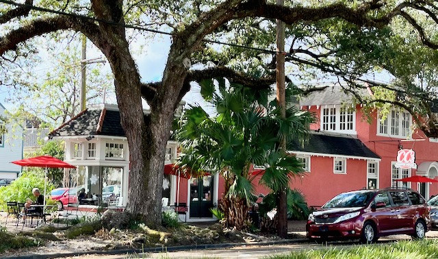 Metairie, across the line into Jefferson Parish, is New Orleans’ nearest suburb. The closest part, Old Metairie, is little more than five miles from the French Quarter, closer to downtown New Orleans than some parts of actual New Orleans. One can really feel the Red/Blue divide when crossing the Parish line, although Old Metairie is as upscale as anywhere in the New Orleans metro area. In my New Orleans neighborhood of Lower Garden District I sense lots of people are from Somewhere Else and you do not hear the distinct Brooklynesque White New Orleans accent all that often. At coffee houses in Old Metairie you hear that accent constantly, and no one wears a mask. I cycled to the area several times and enjoyed sitting outside, sipping my oat milk latte and reading.