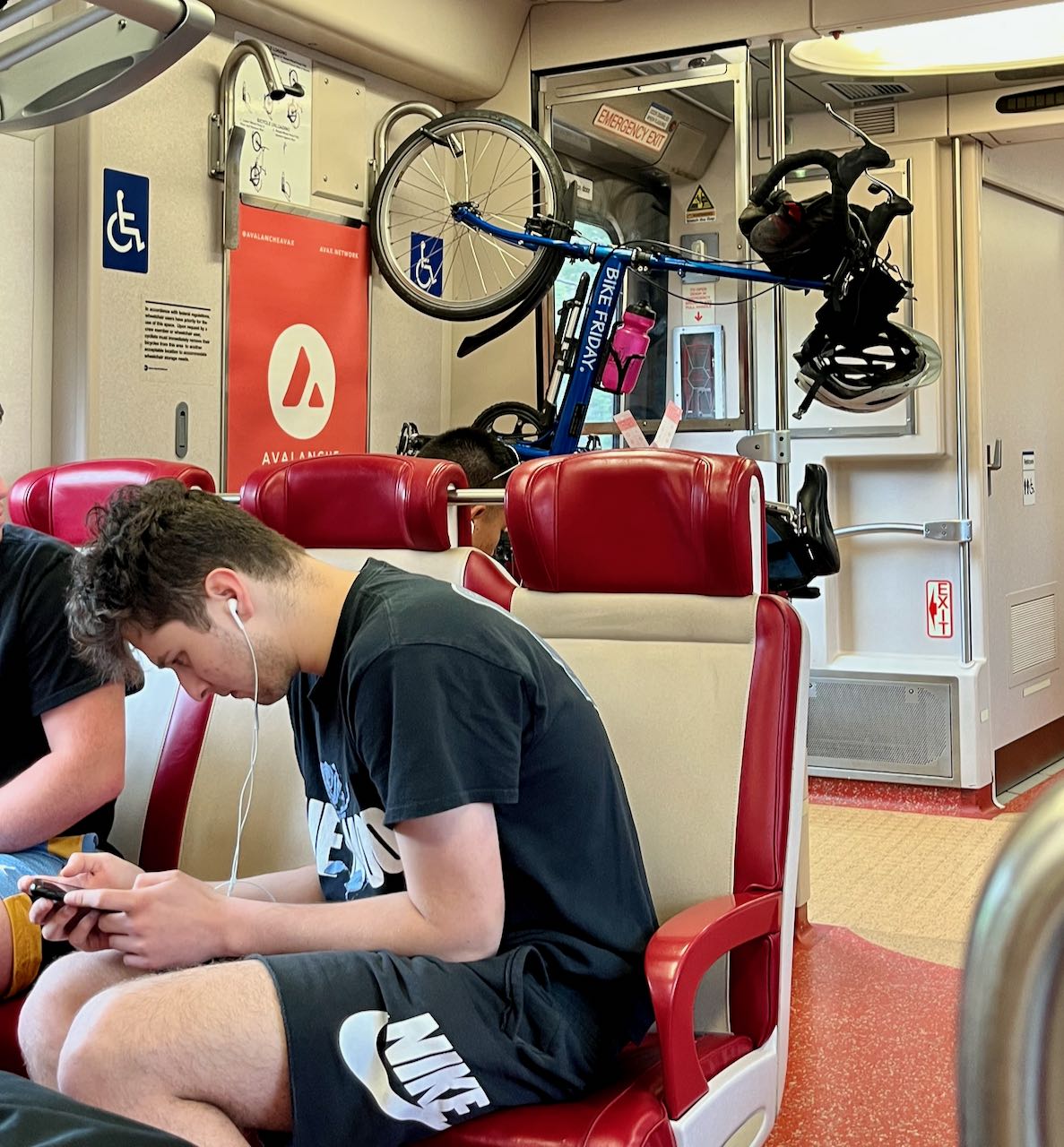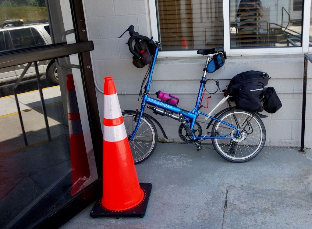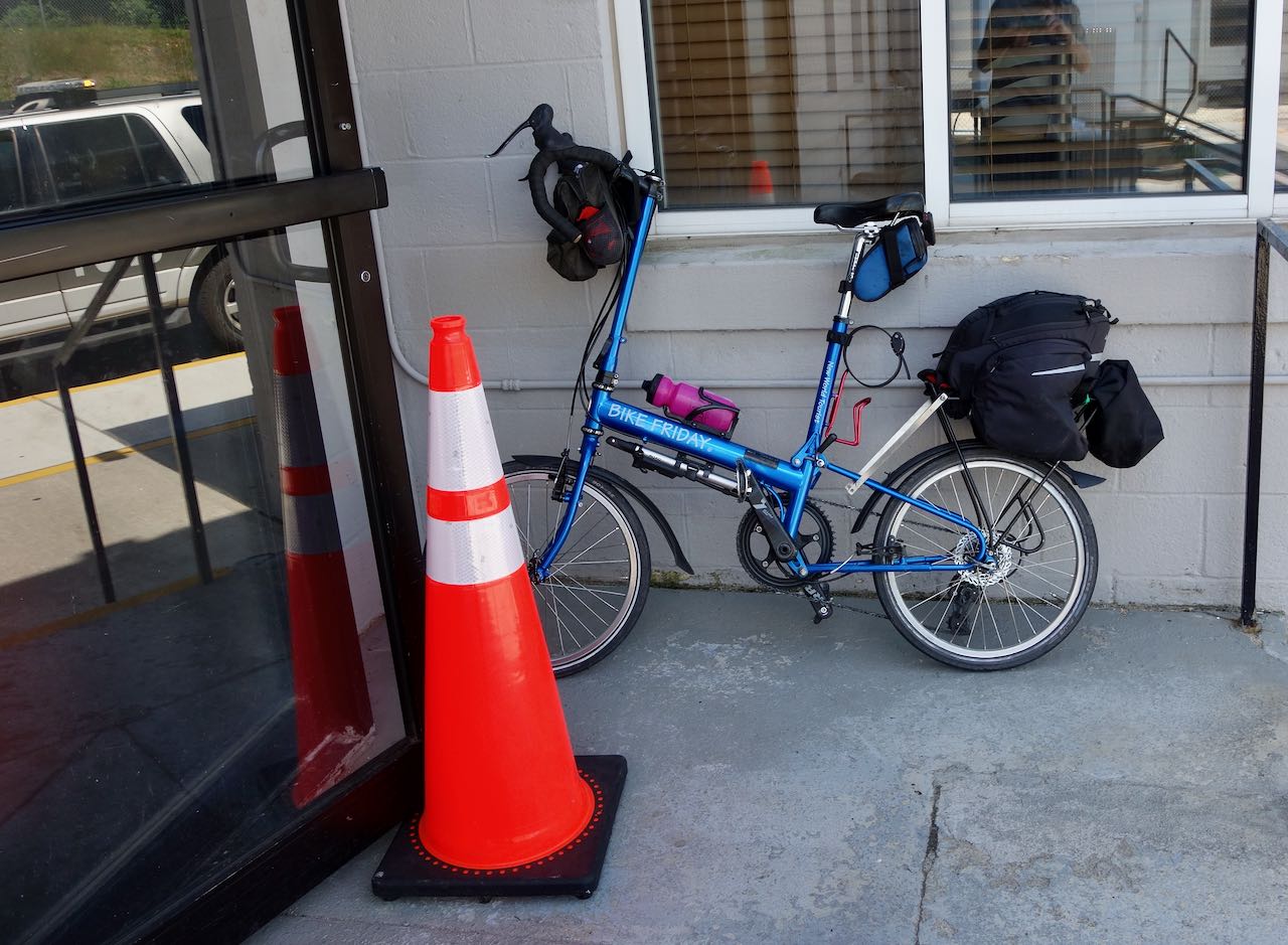 I biked over to the train station. The bike went on the train with me, no need to fold it.