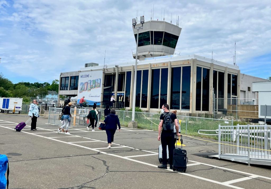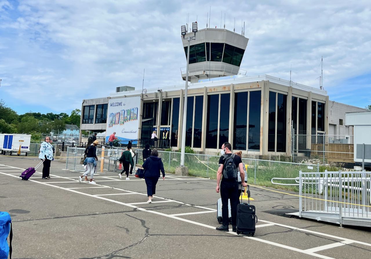 The New Haven airport terminal is tiny, almost as small as the Carrboro NC train station. After landing you walk from the plane across the tarmac.