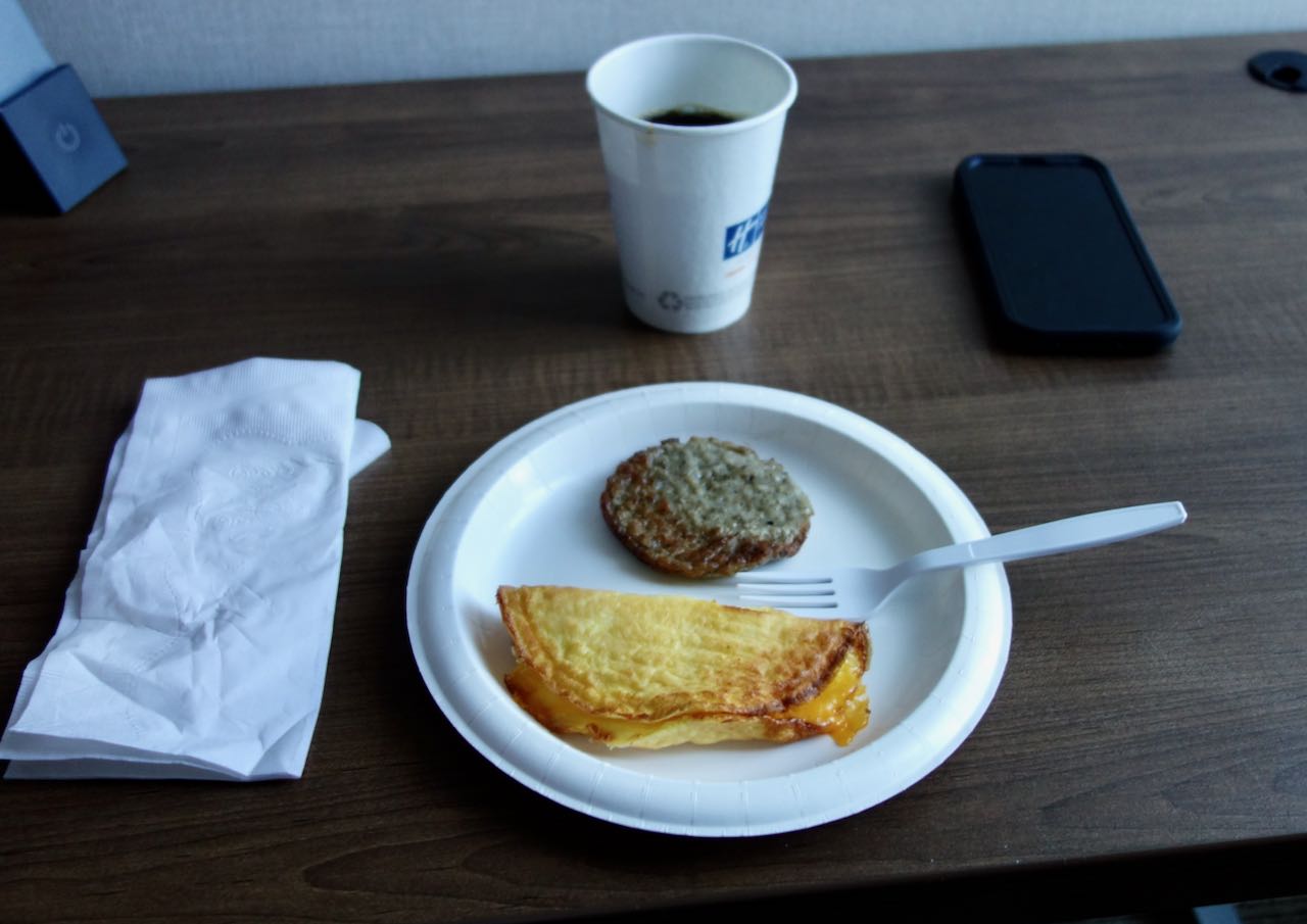 The free breakfast the next morning at the expensive hotel was lame. I made my own peanut butter and jelly sandwich instead.