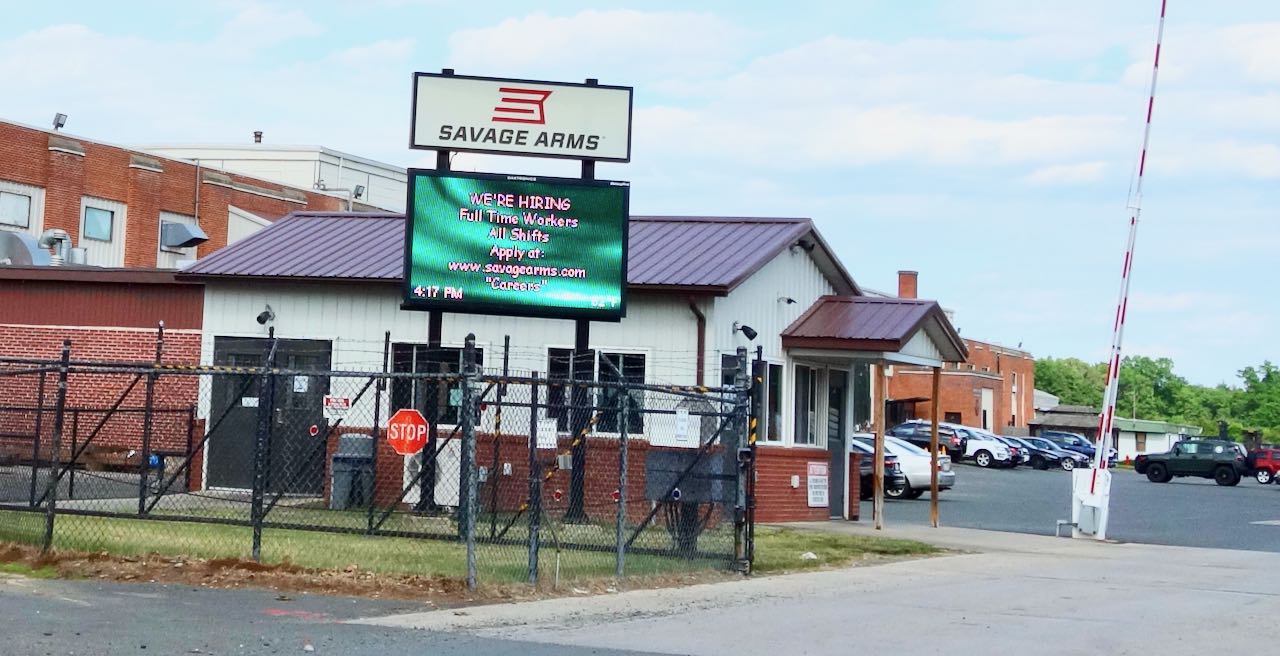 The region of western Massachusetts and northern Connecticut is the original center of gun manufacturing in America. Smith & Wesson and Colt come from this area. Two blocks from my hotel and next to the Turnpike, a factory for Savage Arms had a jammed parking lot. The sign said Help Wanted.