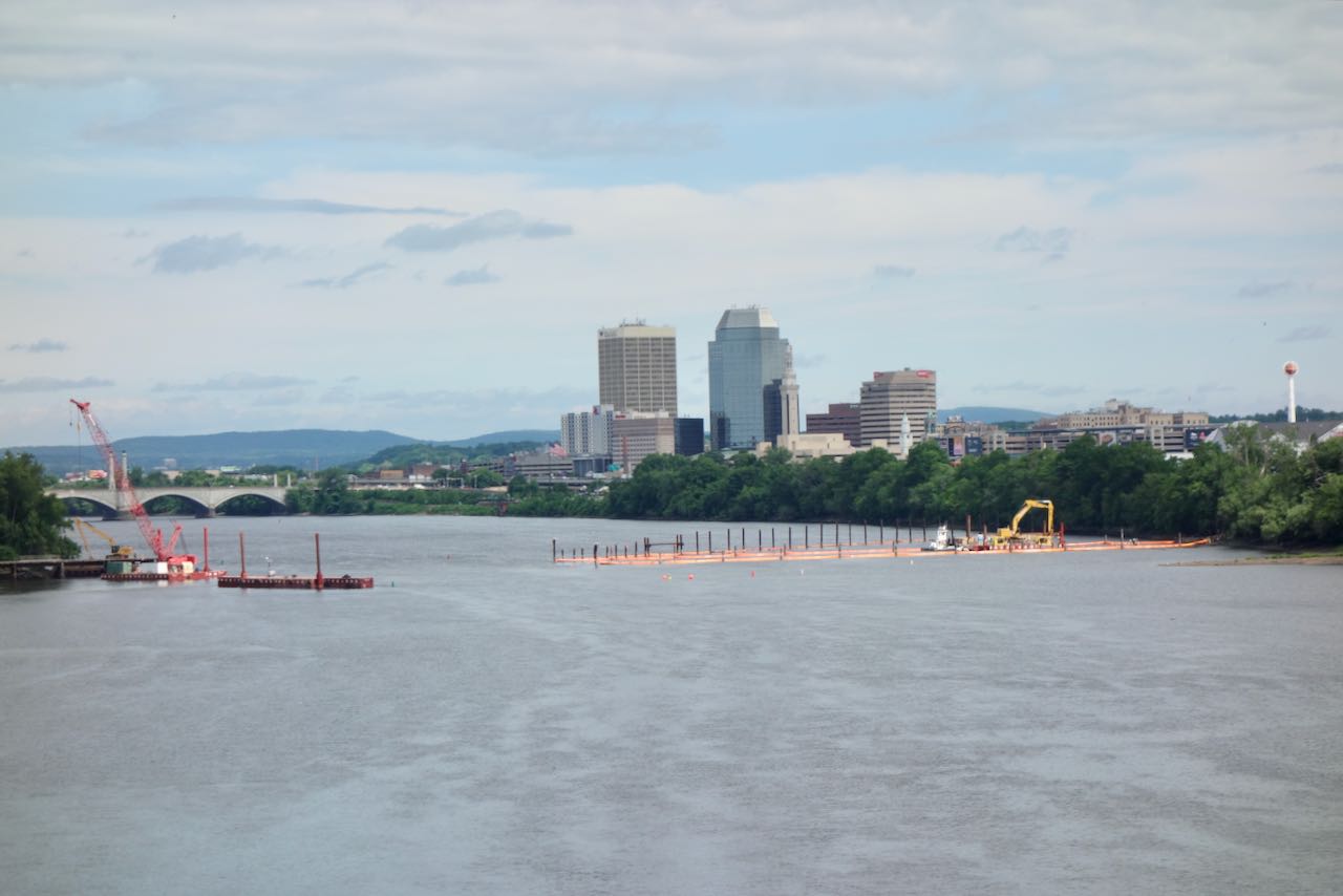 Leaving the hotel by bicycle I headed downriver. Springfield has a lovely riverfront bike path to nowhere that dead ends. You have to turn around and come back to where you started! I got back on a regular street that crossed over the Connecticut River, and looked back at Springfield MA.