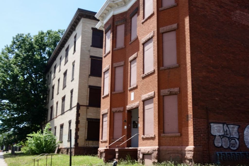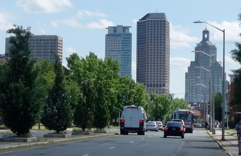 Coming into Hartford from the north on the highway CT-159 that parallels the river it seemed I would have to bicycle through most of Hartford to get to my Airbnb on the southwestern side of town. I knew that Hartford has significant poor neighborhoods and urban problems. I had no way of knowing the proper route to avoid poorer “dangerous” neighborhoods. I pressed on, knowing that the risk of getting run over by a car was a much greater risk than getting mugged, and seemingly-safer suburban areas are usually more dangerous to bicycle than a grid of city streets. As the neighborhoods began to look poorer I could start to see the high-rises of downtown Hartford in the distance.