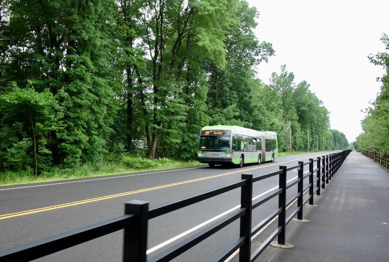 My plan for the next day was to ride back south to New Haven CT, forty miles to the south. My first few miles from Hartford were on the bike path that parallels the CT Fastrak Busway, an eleven mile long highway built exclusively for buses between Hartford and New Britain CT. There used to be proposals to build this kind of transit back home between Chapel Hill NC and Durham NC.