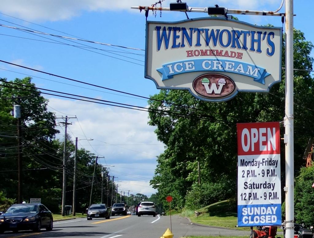 Coming down the mountain I got back on the trail I had been on three days earlier, the Farmington Canal Heritage Trail which I took the twenty something miles back south to New Haven. On the way I cycled a quarter mile off the trail for ice cream at a place called Wentworth’s.