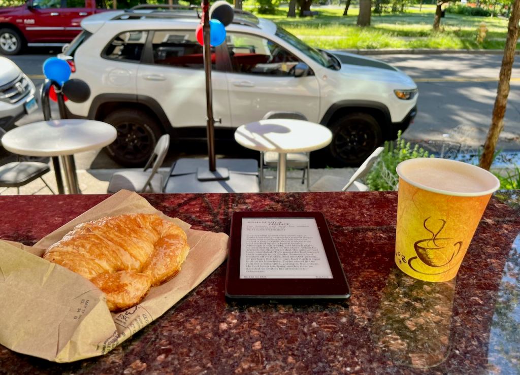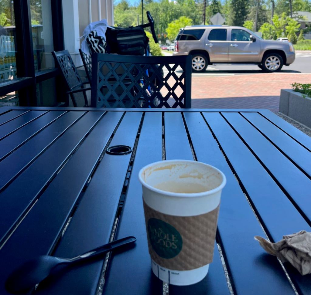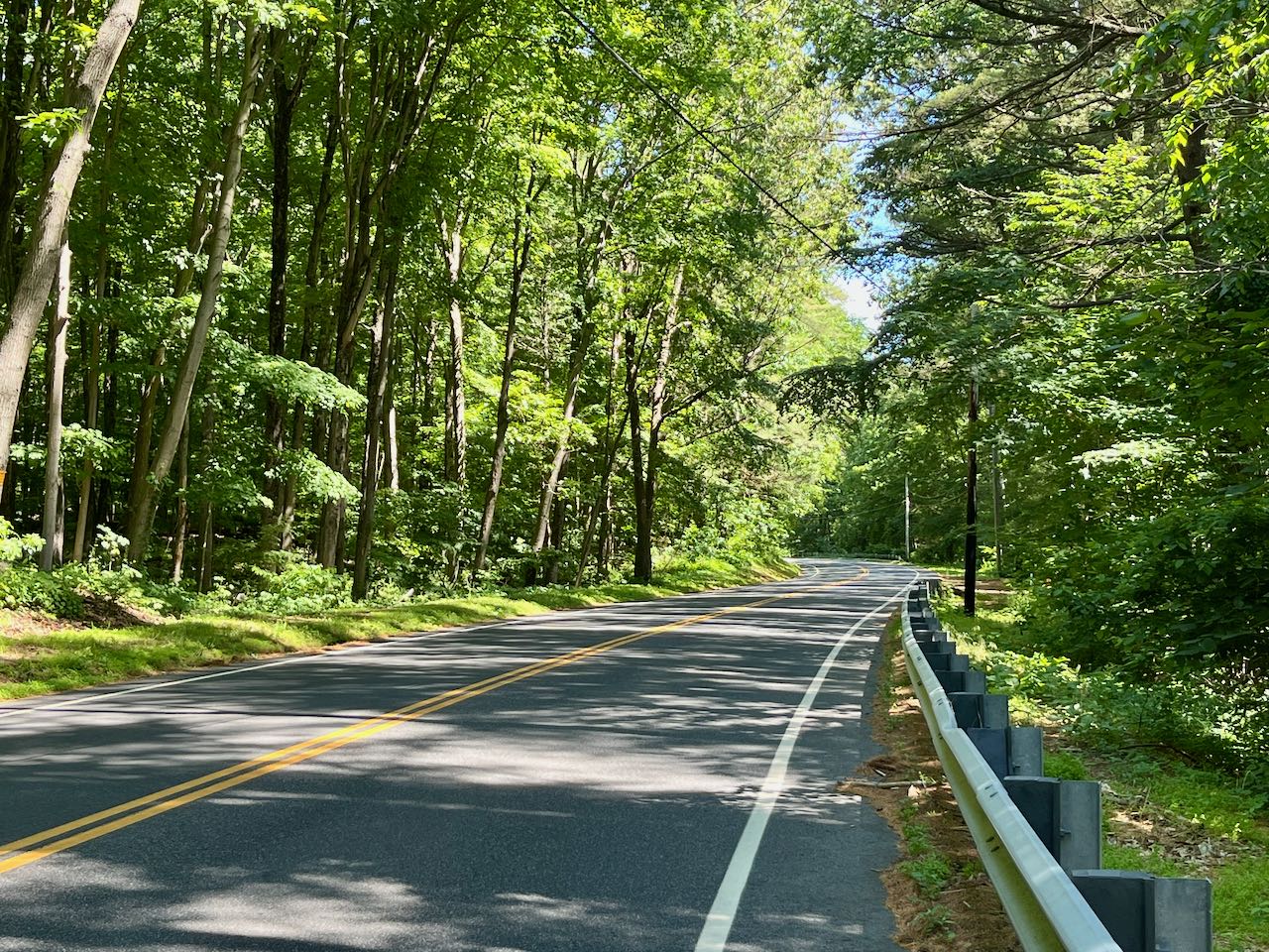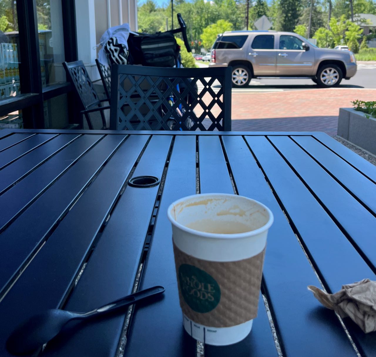 Close to noontime it felt like I was in the middle of nowhere. The trail briefly ended and I cycled along suburban roads. In an obviously new development I stumbled onto a Whole Foods Market. I realized this was the exurbs of Hartford. In a state where most urbanity looks historic or at least old, here among these woody suburban office parks (I assume mostly for the insurance industry) the roads and the buildings both look brand new. Why not get a coffee from Whole Foods? I sat outside with an oat milk latte, one pack sugar, watching fancy SUVs circle through the parking lot.